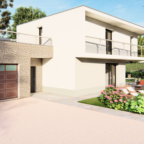 Caratteristiche principali: Piano Terra (circa 70 mq): Soggiorno/Cucina Open Space: Spazio di circa 35 mq con ampie vetrate che favoriscono l'ingresso di luce naturale e collegamento diretto a un ampio terrazzo. Bagno di Servizio: Dotato di materiali riciclabili e sistemi per la riduzione dei consumi idrici. Lavanderia: Spazio dedicato con attrezzature a basso consumo energetico. Box Auto: Accessibile internamente, con spazio per un'auto e area di deposito. Primo Piano (circa 70 mq): Camera Matrimoniale: Spaziosa, con cabina armadio adiacente e finestre che offrono una vista panoramica. Due Camere: Entrambe di buone dimensioni, con accesso a un terrazzo privato o balcone. Due Bagni: Il bagno principale con finiture di alta qualità, entrambi dotati di sistemi di risparmio idrico. Esterni: Ampio Terrazzo: Ideale per momenti di relax e convivialità, con spazio per un'area pranzo all'aperto. Piscina Esterna: Posizionata strategicamente per garantire privacy e massima esposizione al sole, realizzata con materiali naturali e sistemi di filtrazione eco-compatibili. Sostenibilità e Comfort: Struttura in Legno: Utilizzo di legno certificato per garantire resistenza e un eccellente isolamento termico. Materiali Riciclabili: Finiture interne ed esterne realizzate con materiali a basso impatto ambientale. Comfort Termico: Isolamento termico di alta qualità, impianto di riscaldamento a pavimento e pannelli solari per la produzione di acqua calda. Ventilazione Naturale: Progettazione che favorisce una corretta ventilazione, mantenendo un microclima ottimale all'interno della villa. Classificazione Energetica: Il progetto mira al raggiungimento della classe energetica Gold, attraverso l'uso di tecnologie innovative e materiali ecocompatibili, assicurando un'abitazione efficiente e rispettosa dell'ambiente. Villa Vera rappresenta una soluzione abitativa che unisce estetica, funzionalità e sostenibilità, offrendo un ambiente ideale per chi desidera vivere in armonia con la natura senza rinunciare al comfort moderno.